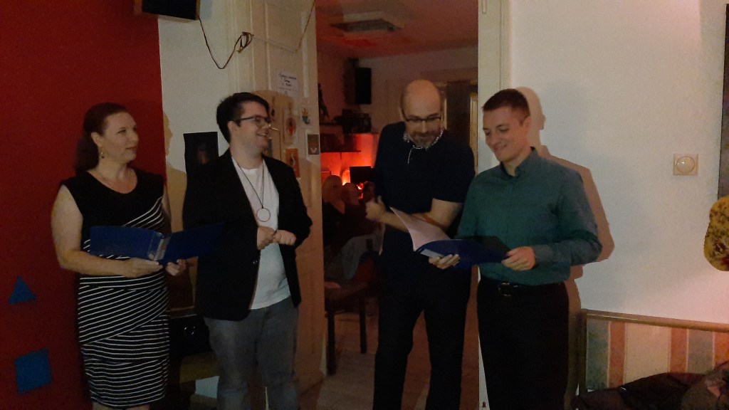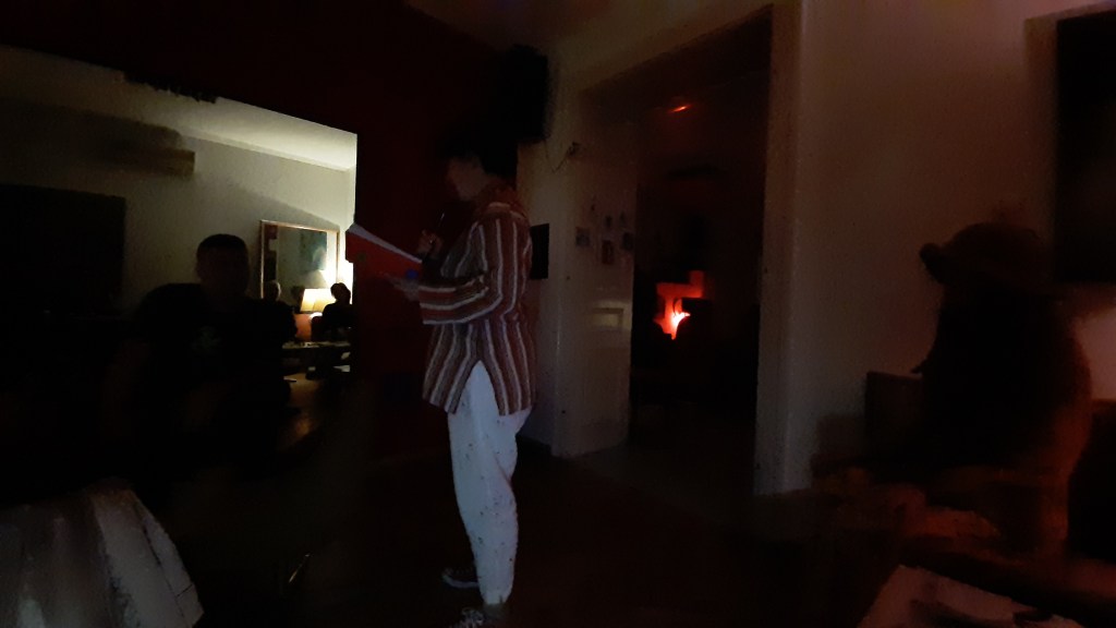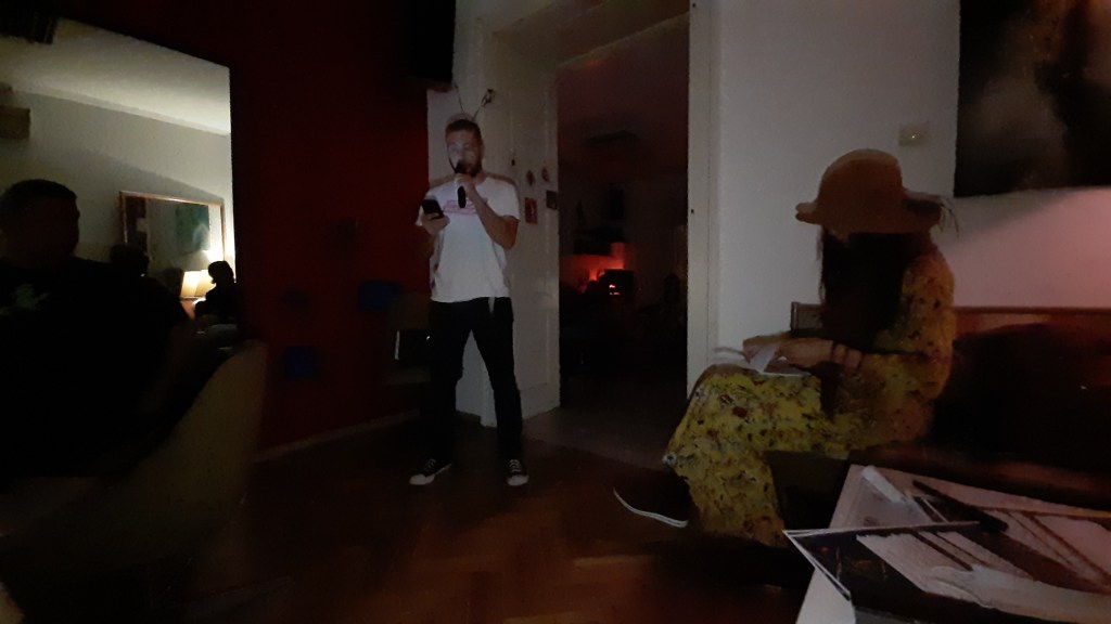 DANIJELA KOSTIĆ je, kako kaže, dobila izazov koji se slaže uz njenu crnogorsku genetiku, a to je da sporo pročita sopstvenu pesmu „Kad te nema“, što je ona uspešno i učinila, jer je, kako dalje u šaljivom tonu nastavlja – „vežbala pola veka“. „Inače imam tremu kad čitam i ovo će verovatno da mi pomogne“, izjavila je KATARINA FIAMENGO ALISPAHIĆ za svoj izazov marširanja uz čitanje, pre nego što je započela govorenje svoje pesme „Vazduh“ uz sopstveno marširanje pripomognuto samoiniciranim marširanjem publike. ŠIMON CUBOTA je na sebi svojstven način govorio pesmu „Predah“ u sedećem položaju. EMILIJA VUČIĆEVIĆ je vrlo kratku, ali upečatljivu pesmu bez naslova govorila šetajući među publikom. Naša ANĐELIJA DEJIĆ je svoju pesmu „Čuvarkuća“, u skladu sa izvučenim izazovom, govorila najbrže što je mogla, a potom i regularno.