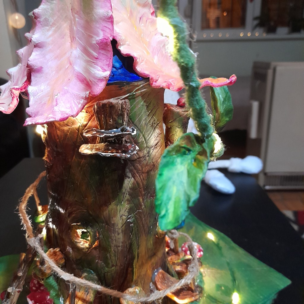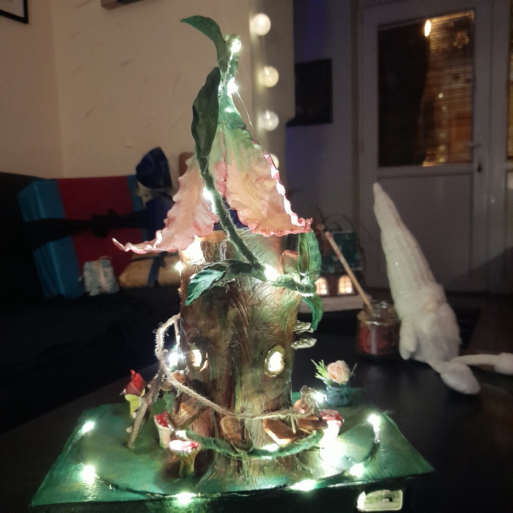 I, baš tada ja sam se umešala jer mi se dopala ideja da živim u drvetu – na taj način bi i moja kuća bila deo šume. Znate, šuma je poput velikog organizma u kojem je svaka životinja, pečurka, cvet i drvo povezana putem korenja i oni tako međusobno pričaju, pomažu se i zavise jedni od drugih. Pa čak i staro drvo, koje više ne lista, deo je tog komunikacionog lanca jer ono svojim korenjem prenosi poruke i pomaže u opstanku čitave šumske zajednice, tako da u šumi zapravo i nema smrti. E, baš od takvog jednog starog drveta nastala je moja kuća.