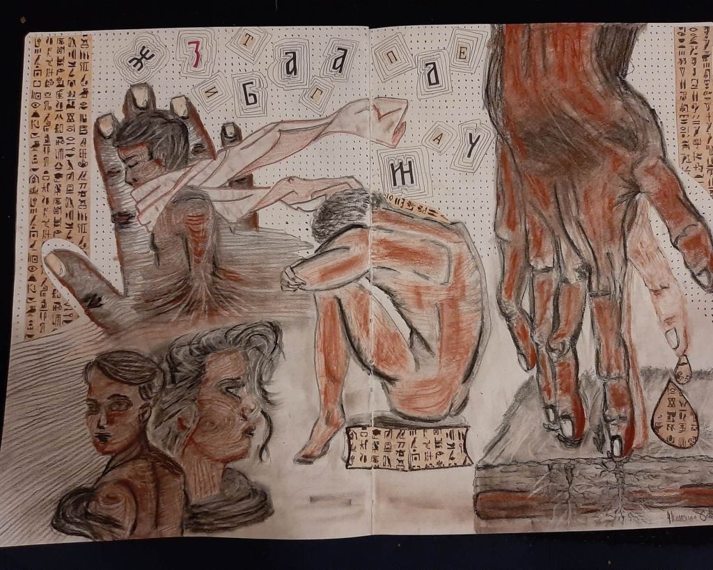 Izašla sam. Do mene nisu dopirali zvuci rafala u izlaznom međuprostoru. Kako sam se udaljavala zvučni prostor oko muzeja je ispunjavao pijuk galebova. Zažmurila sam i ugledala nepregledno plavo prostranstvo koje je zahtevalo da bude popunjeno. Polusvesno sam otišla do radnje gde se prodaje likovni pribor, kupila olovke za crtanje i blok, odvezla se do stana, skinula sa sebe jaknu i čizme, otvorila blok i počela energično da iscrtavam ‒ ja čiji je medij pisanje. I nisam prestala do njegovog završetka. Nazvala sam ga „Anatomija uma“.